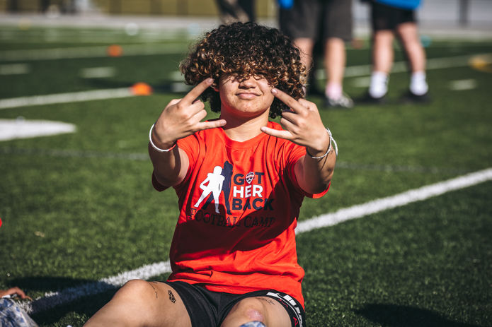In 2023, Got Her Back teamed up with Women's National Football Conference (WNFC) teams in 12 cities to host football camps created FOR girls, coached BY women. The inaugural nationwide camp series created free skill opportunities for female tackle and flag athletes ages 6-18, while providing connections with WNFC athletes and coaches.